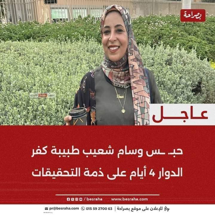 حبس الدكتوره/وسام شعيب طبيبه كفر الدوار اربعه ايام علي ذمه التحقيقات الاعلاميه ايرين سمير مديرة شبكة اخر خبر الاخباريه بالقاهره - مصر الحرةالتجاوز إلى المحتوى
